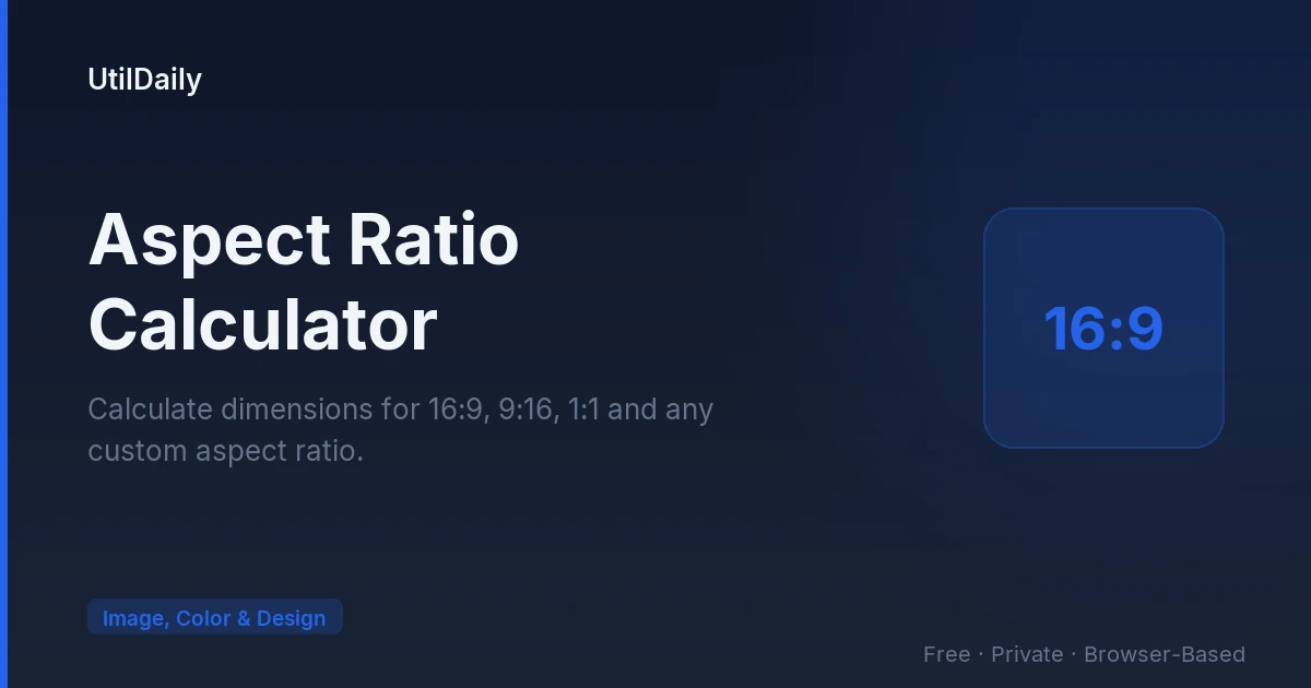 To find the aspect ratio of an image or video, divide both the width and height by their greatest common divisor (GCD). For example, 1920×1080: the GCD of 1920 and 1080 is 120, so 1920÷120 = 16 and 1080÷120 = 9, giving an aspect ratio of 16:9. Similarly, 1080×1350 has a GCD of 270, producing 4:5. This calculator does this automatically — enter any width and height, and the Simplified Ratio display instantly shows the reduced fraction. This is useful for identifying the ratio of existing images before resizing them for a different platform. To resize and compress images once you know the target dimensions, use our <a href="/tools/image-resizer-compressor/">Image Resizer & Compressor</a>. For choosing harmonious colors for your resized assets, the <a href="/tools/color-palette-generator/">Color Palette Generator</a> creates accessible color schemes.