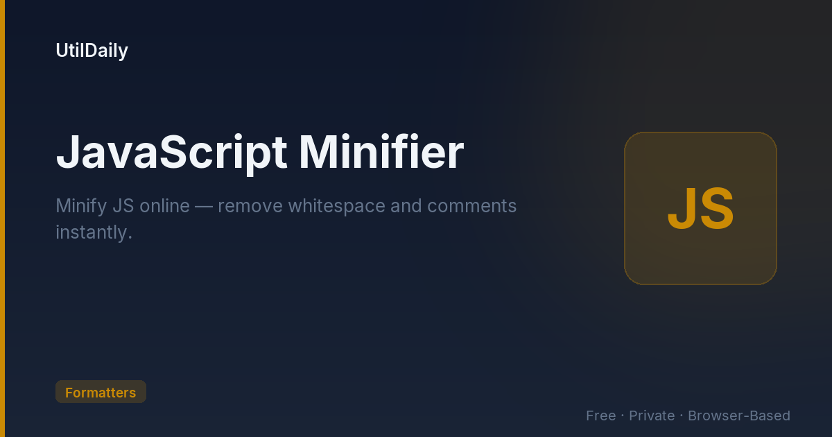 The tool shows your original file size, minified file size, and percentage reduction. Typical JavaScript files shrink by 20-50% from minification alone. For a 200KB bundle, that saves 40-100KB — a significant improvement for users on mobile networks. For even smaller file sizes in production, combine minification with Brotli or gzip compression at the server level.