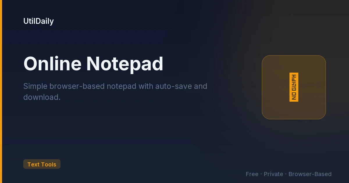 An online notepad fills the gap between heavyweight document editors and temporary clipboard text. Writers use it for distraction-free drafting before moving content into a CMS or word processor. Developers use it as a scratchpad for code snippets, JSON payloads, and log excerpts during debugging sessions. Students use it for quick lecture notes when they need something lighter than Google Docs. The download feature uses the browser's native File API and Blob constructor to generate .txt files entirely on the client side — no server roundtrip is involved. After downloading your notes, you can run them through the Text Analyzer on this site for word count statistics, readability scoring, and character frequency analysis.