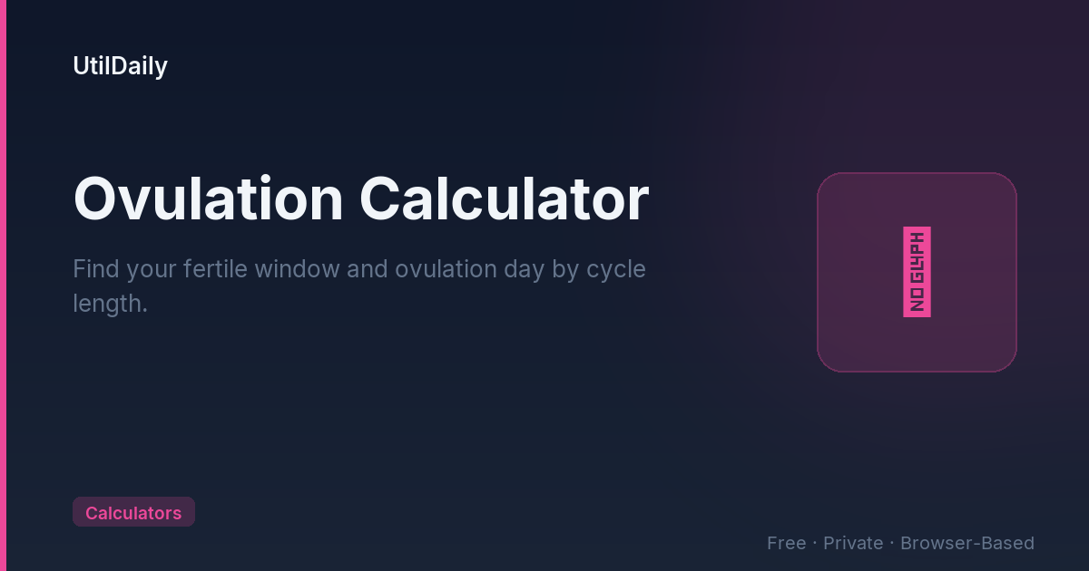Enter the first day of your last menstrual period (the day bleeding began) and your average cycle length in days. Most cycles range from 21 to 35 days — if you are unsure, track your period start dates for 2-3 months and average the lengths. The calculator estimates your ovulation date by subtracting 14 days from your expected next period (since the luteal phase is consistently about 14 days for most people).