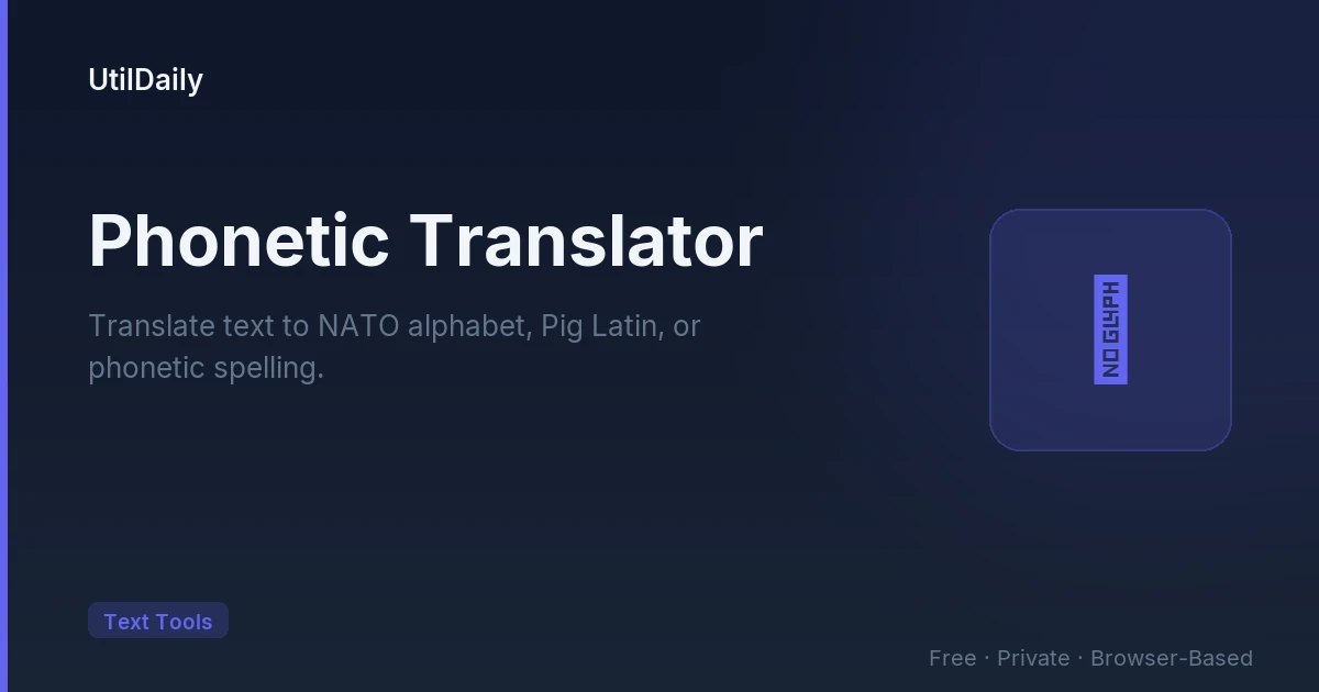 Absolutely. This phonetic translator runs entirely in your browser using client-side JavaScript — no network request is made with your input text at any point. Your content is never uploaded to any server, never stored in any database, and never logged or analyzed by any third party. You can safely translate sensitive information like confirmation codes, license plates, passwords, radio call signs, classified codes, or any other private alphanumeric data. All phonetic conversion — NATO lookup, Pig Latin transformation, and phonetic spelling pattern matching — happens locally on your device using JavaScript string manipulation and object lookups. When you close or refresh the page, all input and output is immediately cleared from browser memory. For extra privacy assurance, the tool works offline — once the page loads, you can disconnect from the internet and continue translating text without any connection to the outside world.