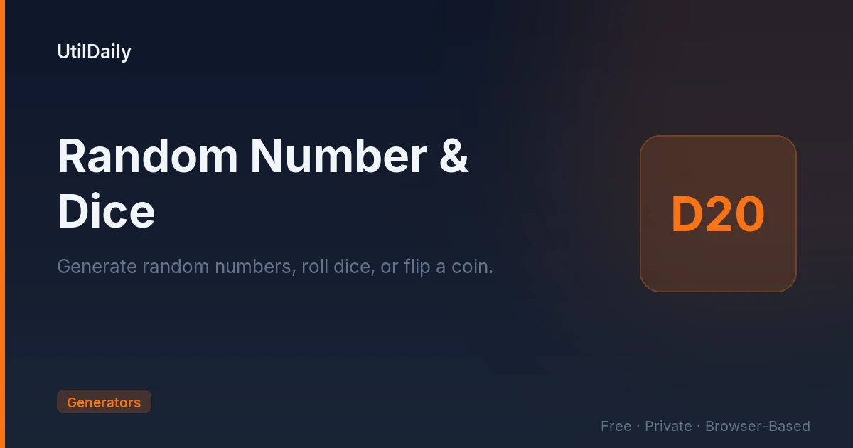 Yes — this tool fully supports tabletop RPG dice rolling for Dungeons & Dragons, Pathfinder, Call of Cthulhu, and any other system that uses polyhedral dice. You can roll D4, D6, D8, D10, D12, and D20 dice individually or in combination. Need to roll 4D6 for character stat generation? Set the number of dice to 4 and select D6. Rolling a D20 for an attack roll plus a D8 for damage? Run each roll separately or use the custom range mode. The dice use the Web Crypto API for cryptographically secure randomness, which means results are statistically fairer than physical dice that may have manufacturing imperfections. This makes the tool ideal for online sessions, remote play over Discord or Roll20, or any situation where physical dice are not available. Every roll is instant, and your results are never sent to a server — everything runs locally in your browser.